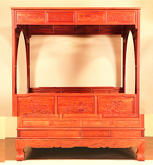 福林堂紅木—大果紫檀—國色天香大床